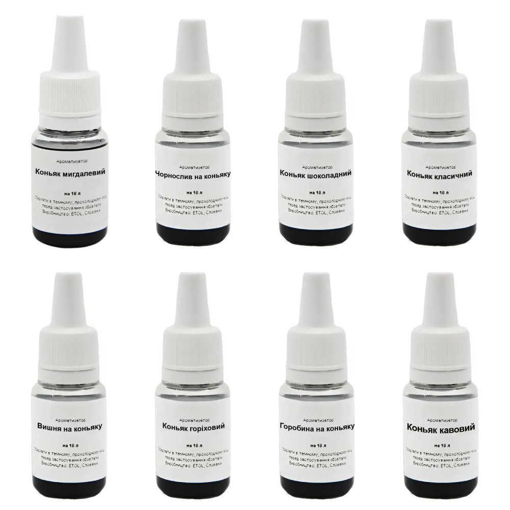 Набір ароматизаторів "Всі коньяки" на 80 літрів - це подорож у світ неперевершених смаків та ароматів елітного напою.